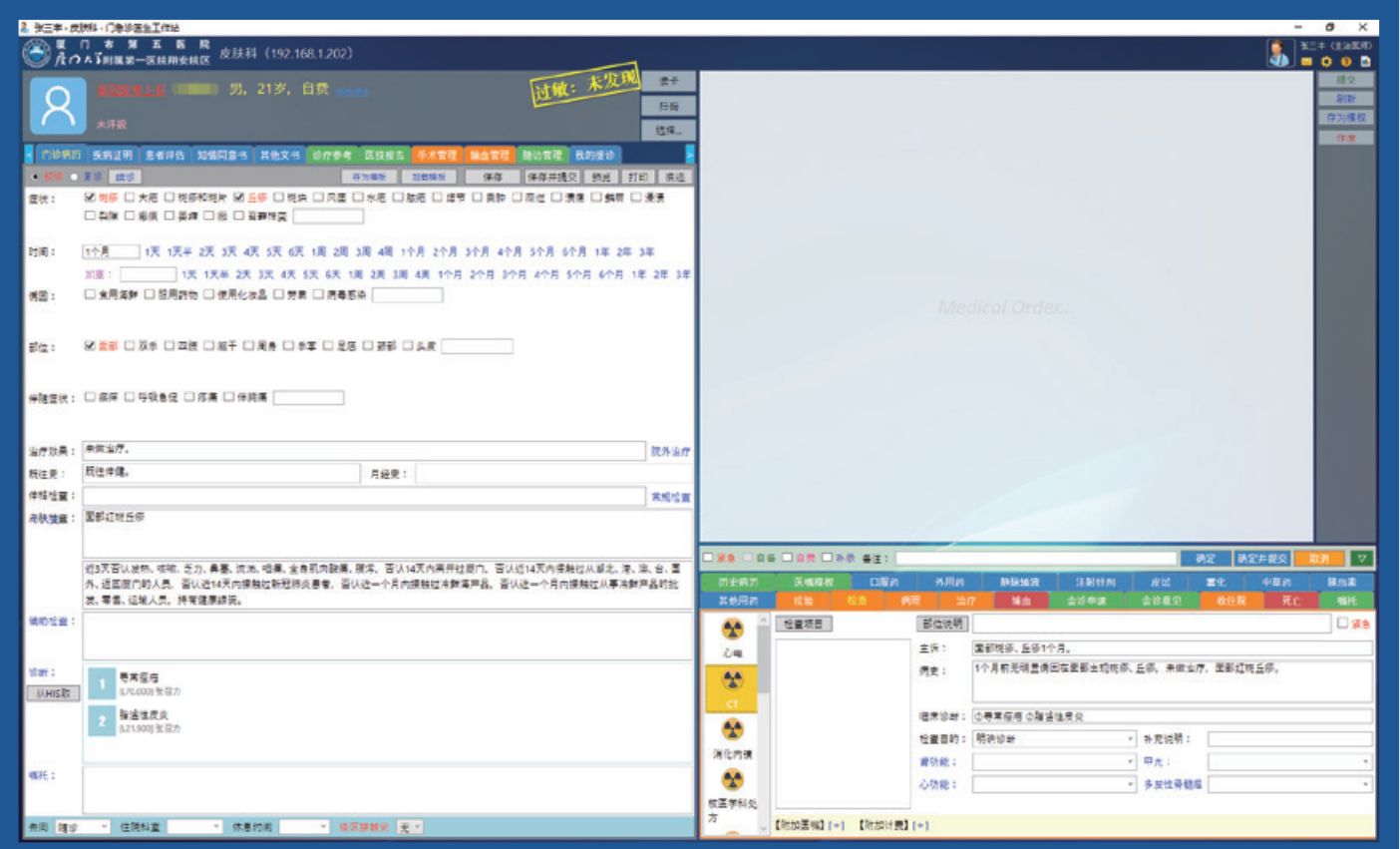 門診電子病歷系統(tǒng)采用一體化設(shè)計(jì),從刷卡、掛號(hào)到寫病歷、開醫(yī)囑都在一套系統(tǒng)中完成,門診病歷具有初診、復(fù)診和續(xù)診模式,支持CA電子簽名和時(shí)間戳,提交后生成具有可靠電子簽名的病歷文檔,滿足無(wú)紙化需要。